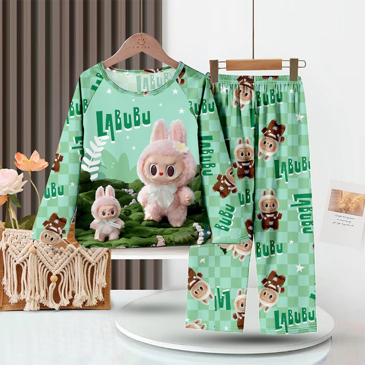 مجموعة Labubu Baby Pajama - ملابس نوم حريرية خضراء مريحة للأطفال