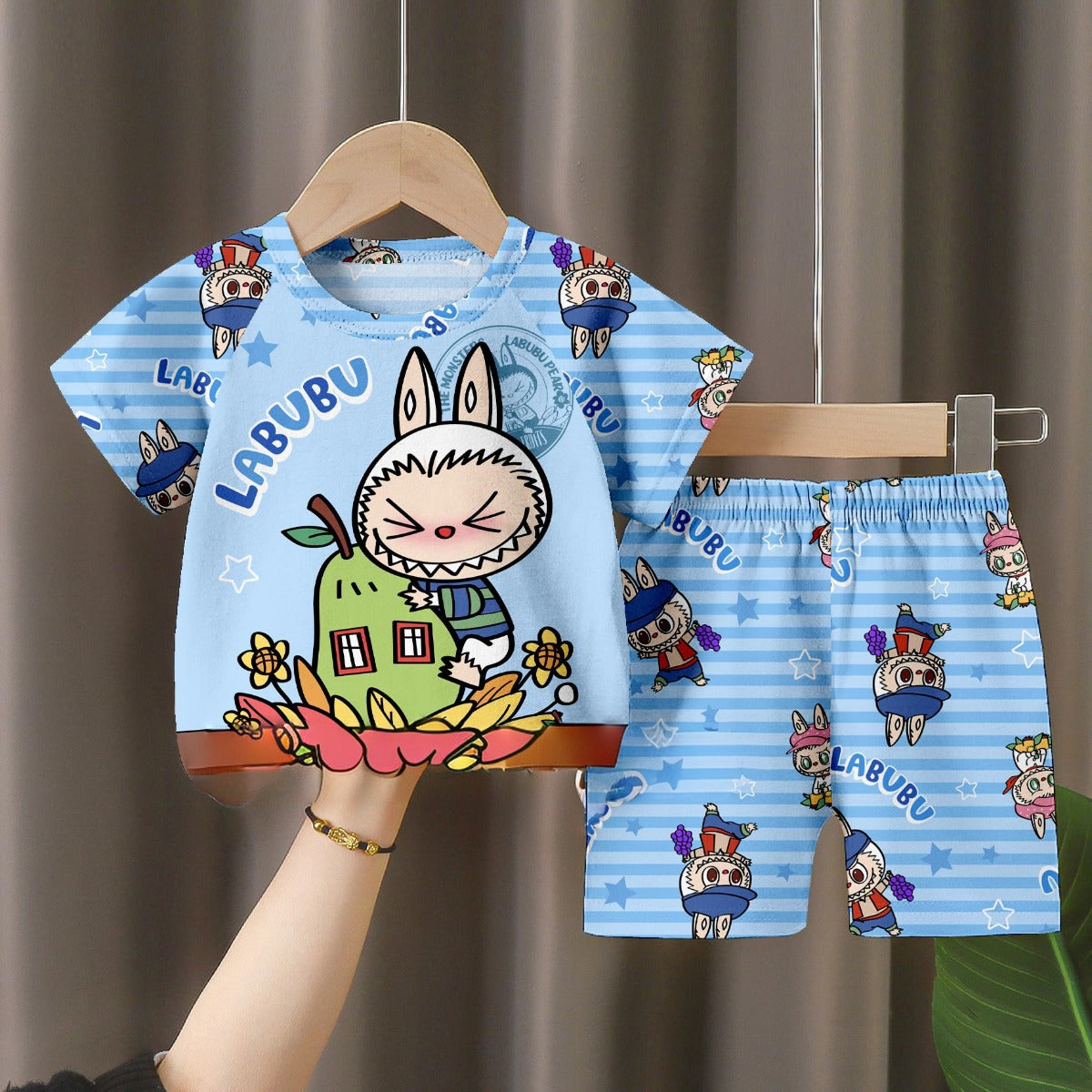 Labubu Baby Pajama Set - ملابس حريرية زرقاء غريبة الأزرق