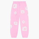 Pink “Cotton Wreath” Denim Tears Sweatpants – White Floral Print Streetwear Pants