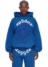 Sp5der OG Web Hoodie 440GSM – Royal Blue Heavyweight Spider-Web Graphic Sweatshirt