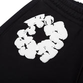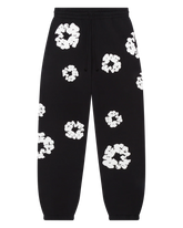 Black “Cotton Wreath” Denim Tears Sweatpants – White Floral Print Streetwear Pants