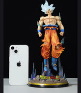 - Pose de Dios Super Saiyan: El cabello de Goku está perfectamente esculpido en un tono blanco brillante, que representa su poderosa transformación
