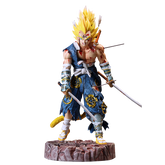 - Diseño de samurai: Vegeta se representa en un atuendo inspirado en samurai, con una mezcla de armadura tradicional y su aspecto clásico de Super Saiyan