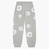 Grey “Cotton Wreath” Denim Tears Sweatpants – White Floral Print Streetwear Pants