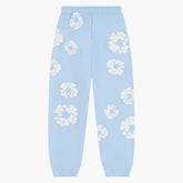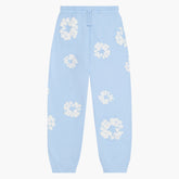Light Blue “Cotton Wreath” Denim Tears Sweatpants – White Floral Print Streetwear Pants