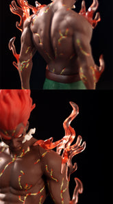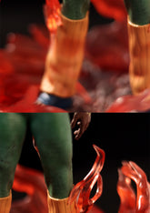 Sus ojos se mejoran con Luces LED, haciéndolos brillar con intensidad, representando su transformación en un luchador capaz de lograr hazañas inimaginables. Este PVC premium La figura está diseñada con un detalle increíble, a partir de su cabello ardiente hacia llamas vibrantes a sus pies.