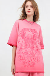 Each piece is garment-dyed with a subtle vintage wash and gradient fade, available in 6 bold colors – sky blue, sakura pink, ash gray, bone white, earthy khaki, and olive green. The drop-shoulder cut and boxy fit reflect the latest in oversized street fashion, perfect for anime fans who love a bold aesthetic.