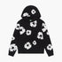 Eye-Catching “Wreath” Motif: Multiple white floral wreath prints scattered across the front, back, sleeves, and hood — distinctive design inspired by denim tears aesthetic.