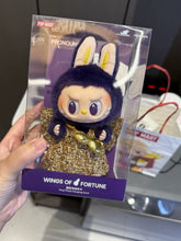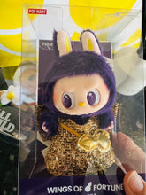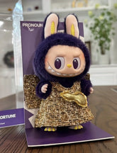 Experience a stylish fusion of designer fashion and collectible artistry with the Labubu Wings of Fortune, a limited-edition plush keychain from the collaboration between POP MART and PRONOUNCE. This Labubu wears a regal purple plush bunny suit adorned with a golden tweed cape-style tunic and metallic sling pouch, embodying the concept of “fortune in motion.”