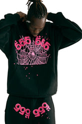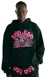 Sp5der 555 Hoodie – Black & Pink Web 440GSM Heavyweight Streetwear Pullover