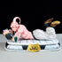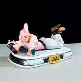 - 캐주얼 포즈: Majin Buu는 편안하게 어울리고 음료를 마시고 잡지를 읽습니다.