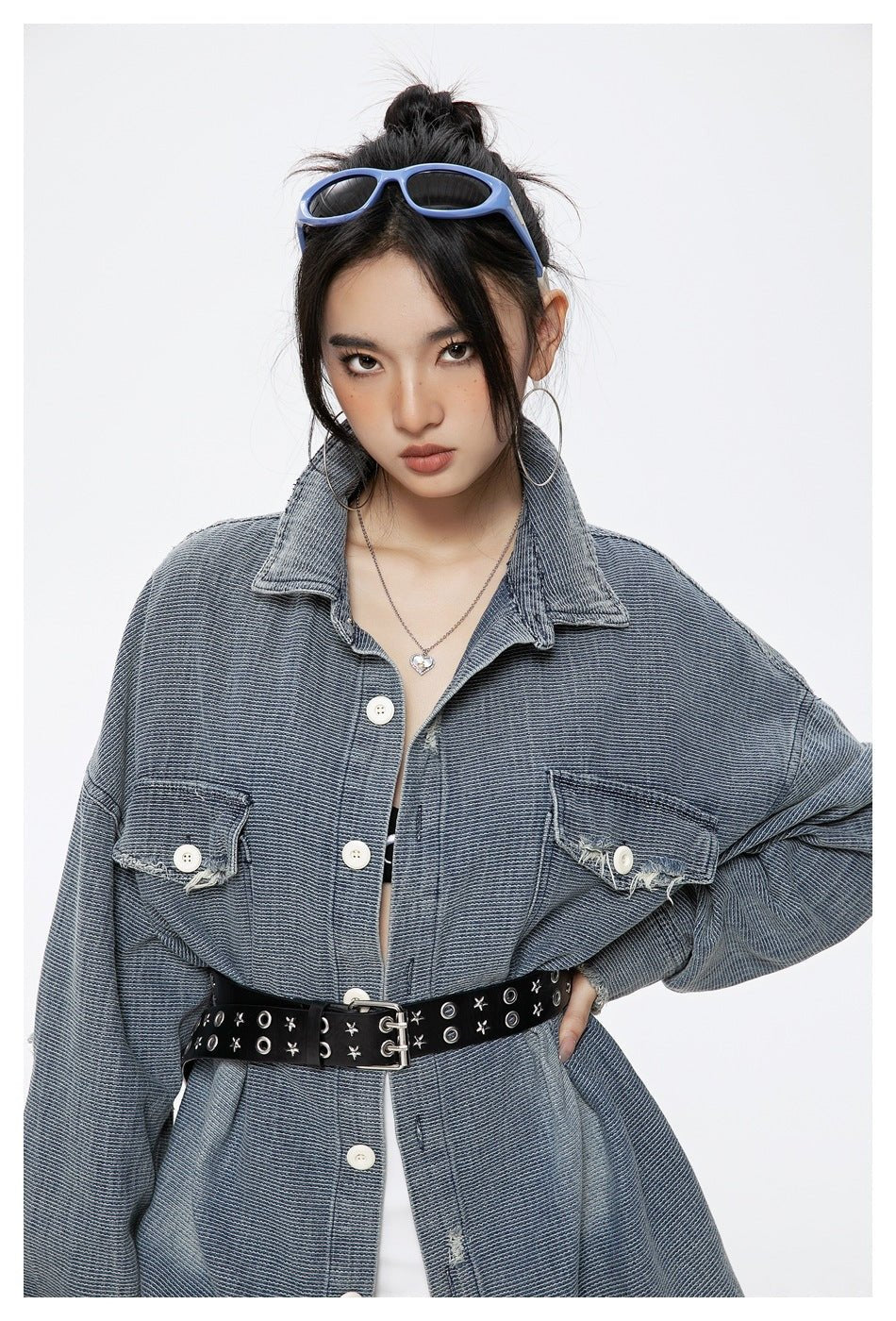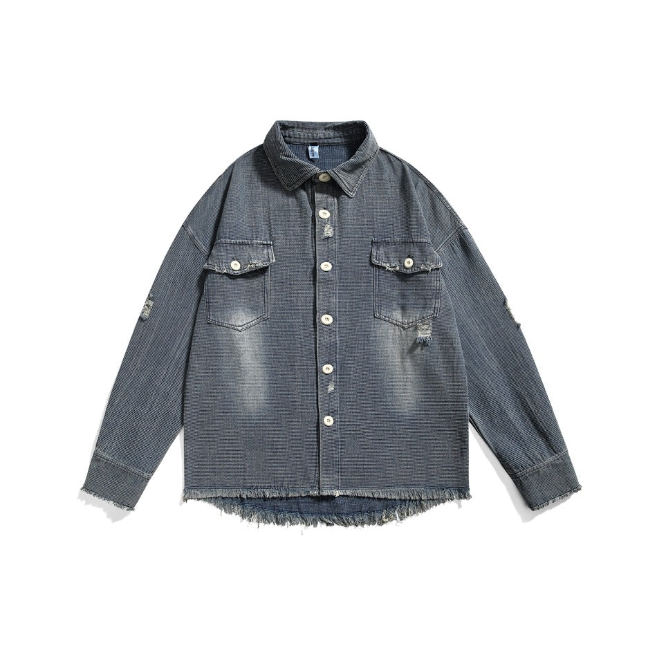 Upgrade your casual wardrobe with our "Shop Distressed Denim Chambray Shirt on Sale." This stylish long sleeve chambray shirt features a classic button-down design with distressed details and dual chest pockets, adding a touch of rugged charm to its vintage aesthetic. The high-quality denim chambray fabric ensures excellent comfort and durability, making it a perfect addition to both men's and women's casual collections. The relaxed fit and unique faded wash give this shirt a distinctive look, ideal for layering over tees or wearing on its own.