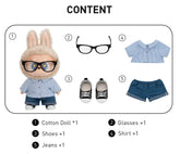Labubu arrives dressed in a stylish everyday outfit: a blue striped shirt, denim jeans, classic black sneakers, and a pair of removable glasses. Whether displayed on a shelf or played with daily, this labubu plush doll lets you express moods your way while staying cozy and fashion-forward.