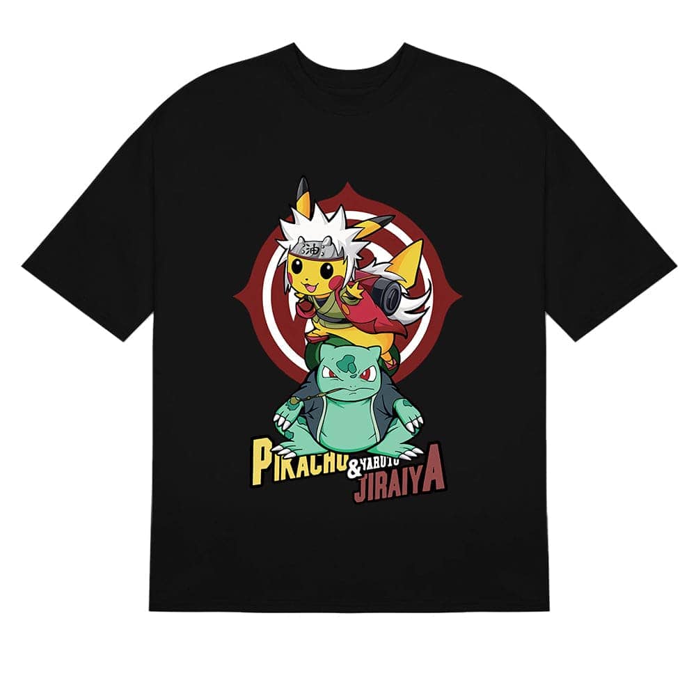 Наруто Шиппуден Пикачу -джирайя кроссовер с графической футболкой - аниме -мэшап одежда