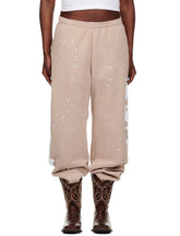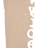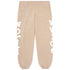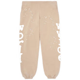 The beige colorway offers a neutral, versatile foundation, accented by bold white Sp5der lettering printed along the sides. Subtle scattered star-style graphic details add texture and visual interest while keeping the overall design balanced and wearable. A relaxed fit combined with elastic waistband and cuffs creates a comfortable silhouette suitable for lounging, casual wear, or styled streetwear outfits.