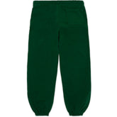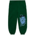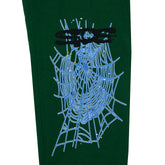 The deep green colorway creates a strong visual base, complemented by a striking spider web graphic printed on the leg. The relaxed fit allows ease of movement, making these sweatpants suitable for lounging, casual wear, or styling as part of a streetwear-inspired outfit.