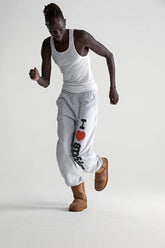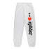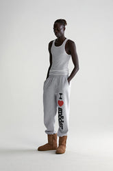 The light grey colorway offers a versatile base, highlighted by the bold “I Love Sp5der” graphic printed vertically along the leg. The relaxed fit and elasticated details create a casual silhouette that works well for lounging, casual outings, or modern streetwear styling.