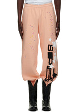 The peach-toned base creates a soft, modern look, contrasted by bold black vertical Sp5der lettering along the leg. White star graphics layered over the logo add dimension and visual movement, while scattered multicolor star accents across the fabric introduce subtle detail without overpowering the design. A relaxed fit with elastic waistband and cuffs ensures comfort for casual wear, lounging, or styled streetwear outfits.