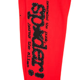 The vibrant red base delivers strong visual impact, contrasted by a black Sp5der logo printed vertically along the leg. Small black star details scattered across the fabric add texture and movement without overpowering the design. Finished with a relaxed silhouette, elastic waistband, and elastic cuffs, these sweatpants are ideal for casual wear, lounging, or standout streetwear styling.