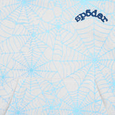 This light grey graphic hoodie features an all-over spider web print that delivers a clean yet striking visual effect. The fine web pattern is distributed evenly across the body, sleeves, and hood, creating a cohesive design with subtle contrast. Soft blue-toned web lines add depth while maintaining a minimal and wearable aesthetic.