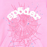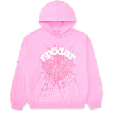 This pink graphic hoodie features a bold spider web print layered with playful star accents, creating a visually striking yet balanced design. The spider web graphic is positioned prominently on the front, while the contrasting lettering adds a focal point that enhances the overall streetwear-inspired look.