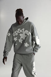 Minimalist tone meets iconic streetwear energy with the Sp5der “Stars” Hoodie in Grey.