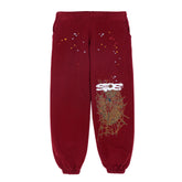 Sp5der Sweatpants – Unisex Burgundy Cotton Sweatpants with Spider Web Graphic
