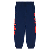 Sp5der Sweatpants Navy Blue Red Side Logo Print – 100% Cotton Streetwear Jogger Pants