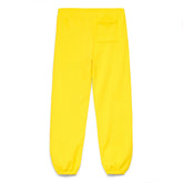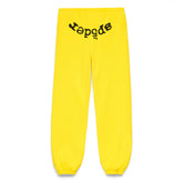 These Sp5der sweatpants feature a clean and bold streetwear design in a vibrant yellow colorway, highlighted by a black arched Sp5der logo printed across the upper front. The minimalist layout allows the bright color and strong logo contrast to take center stage, creating a striking yet wearable look.