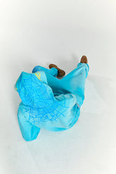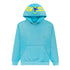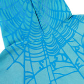 This turquoise graphic hoodie features a clean front design accented with small star details, paired with a bold spider web graphic across the back and hood. The contrast between the minimal front and the detailed back creates a balanced, visually engaging look that stands out without overwhelming the overall design.