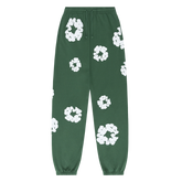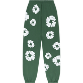 Forest Green “Cotton Wreath” Denim Tears Sweatpants – White Floral Print Streetwear Pants