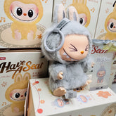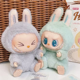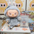 - 標誌性 Labubu Hehe 穿著獨特的灰色兔子服裝
