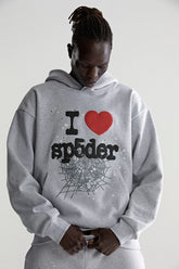Show your streetwear passion loud and clear with the Sp5der “I ❤️ Sp5der” Hoodie in Grey.