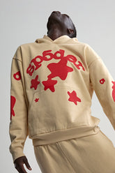Its cream color adds a soft, fashion-forward edge, while the red puff-print stars deliver unmistakable Sp5der identity.
